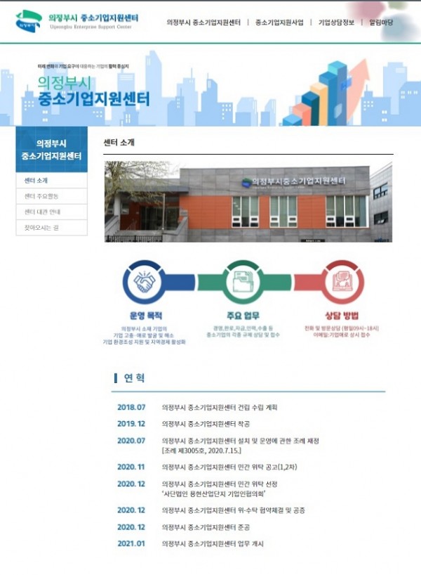 의정부시 중소기업지원센타 홈페이지 구축