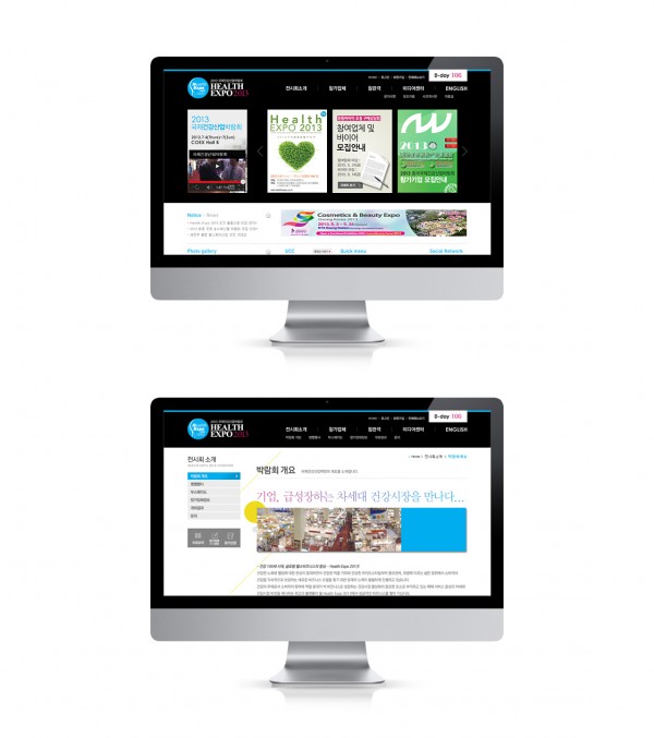 국내 최대의 의료/건강박람회인 국제건강산업박람회(Health Expo) 홈페이지 작업을 진행하였다. 국제건강산업박람회 행사를 홍보하기 위한 목적으로 제작되었으며, 온라인 사전관람신청기능, 참가업체신청, 참가업체 관련 매뉴얼 등의 기능을 제공하여 사용자들이 더 편리하게 행사를 이용할 수 있도록 서비스를 제공하고 있다.